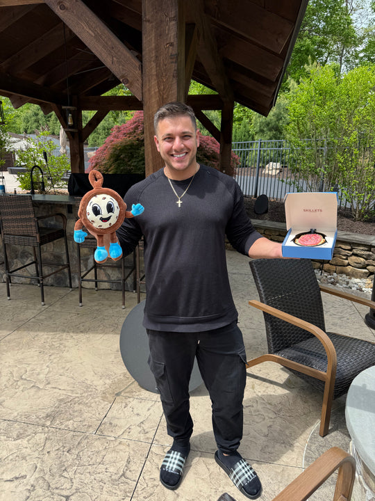 A soft, buttery cookie swirled with warm cinnamon and topped with crunchy walnut pieces. It’s like your favorite cinnamon roll - only better and baked into a fresh warm skillet cookie.