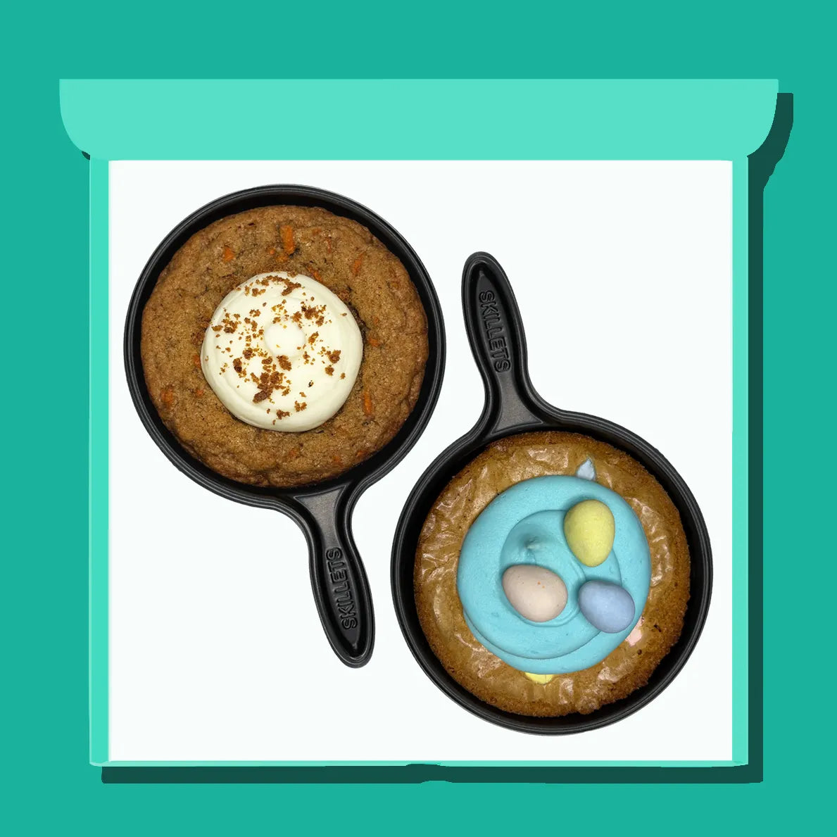This limited-edition 2 pack brings together both seasonal flavors in their full 4" form — one Robin’s Egg Blondie and one Carrot Cake Cookie. From rich brown sugar and milk chocolate to warm spices and silky cream cheese, this duo delivers the best of soft, creamy, and crunchy textures in every bite.